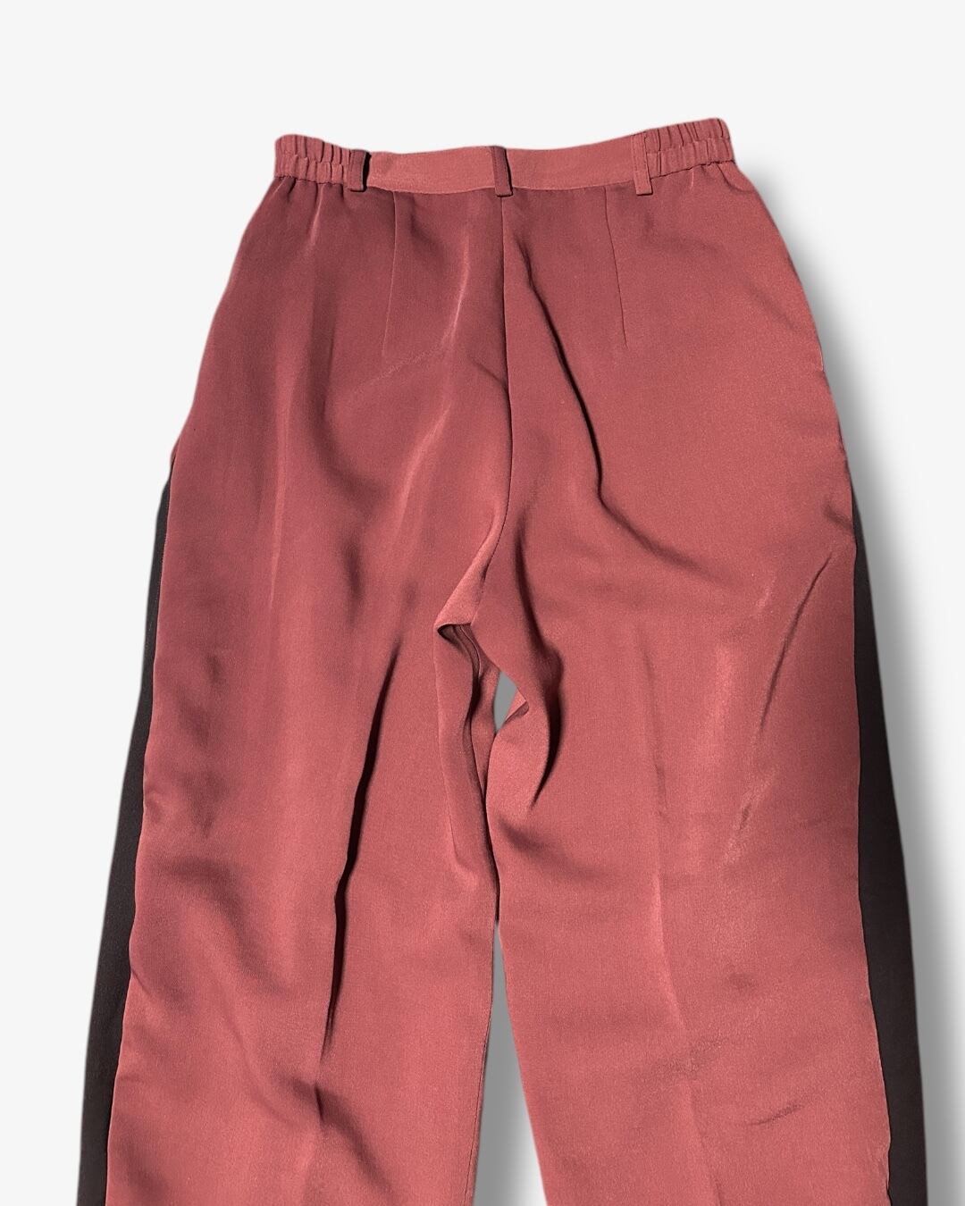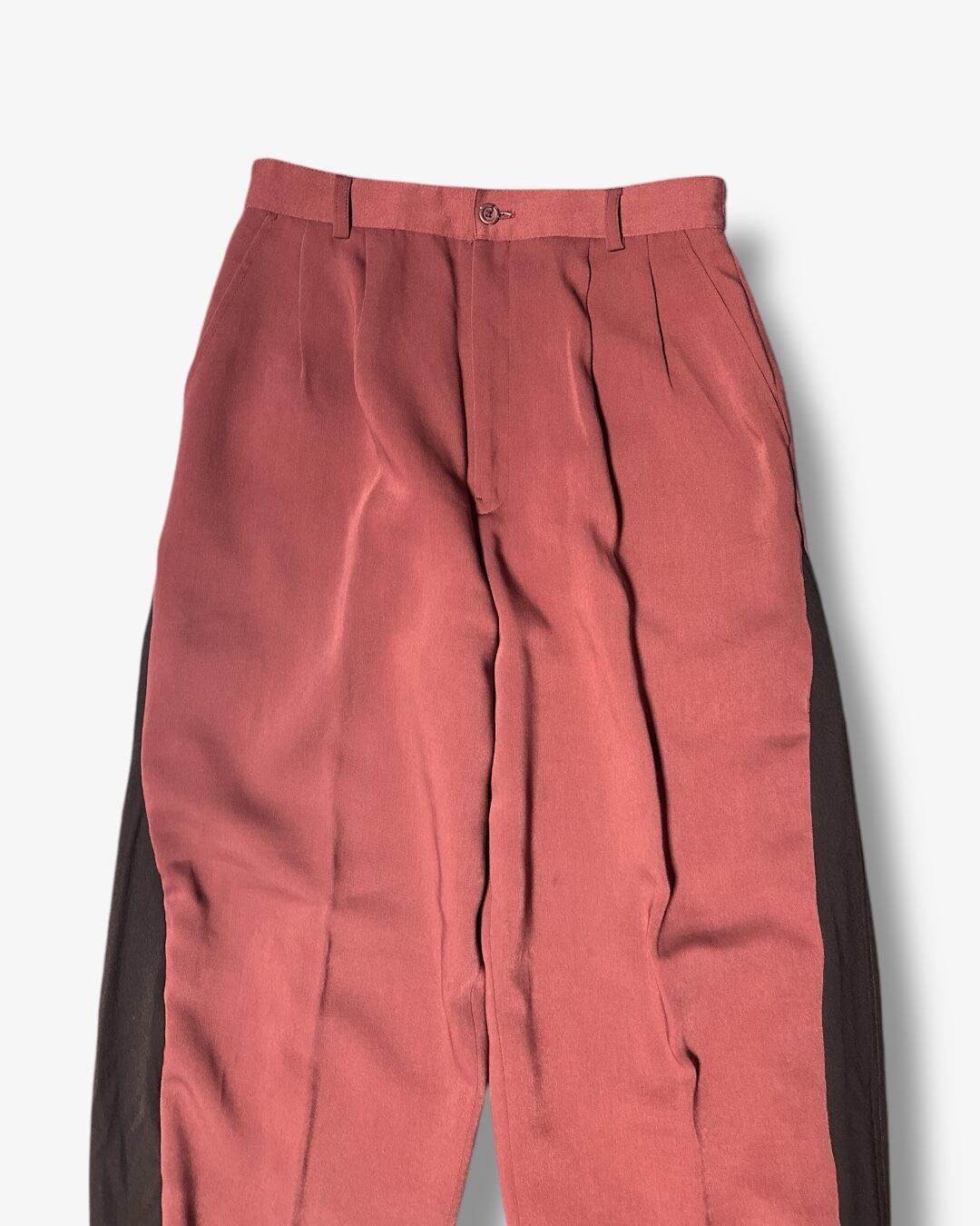2本のスラックスを再構築し、異なるカラーを絶妙なバランスでドッキングしたテーパードパンツ。