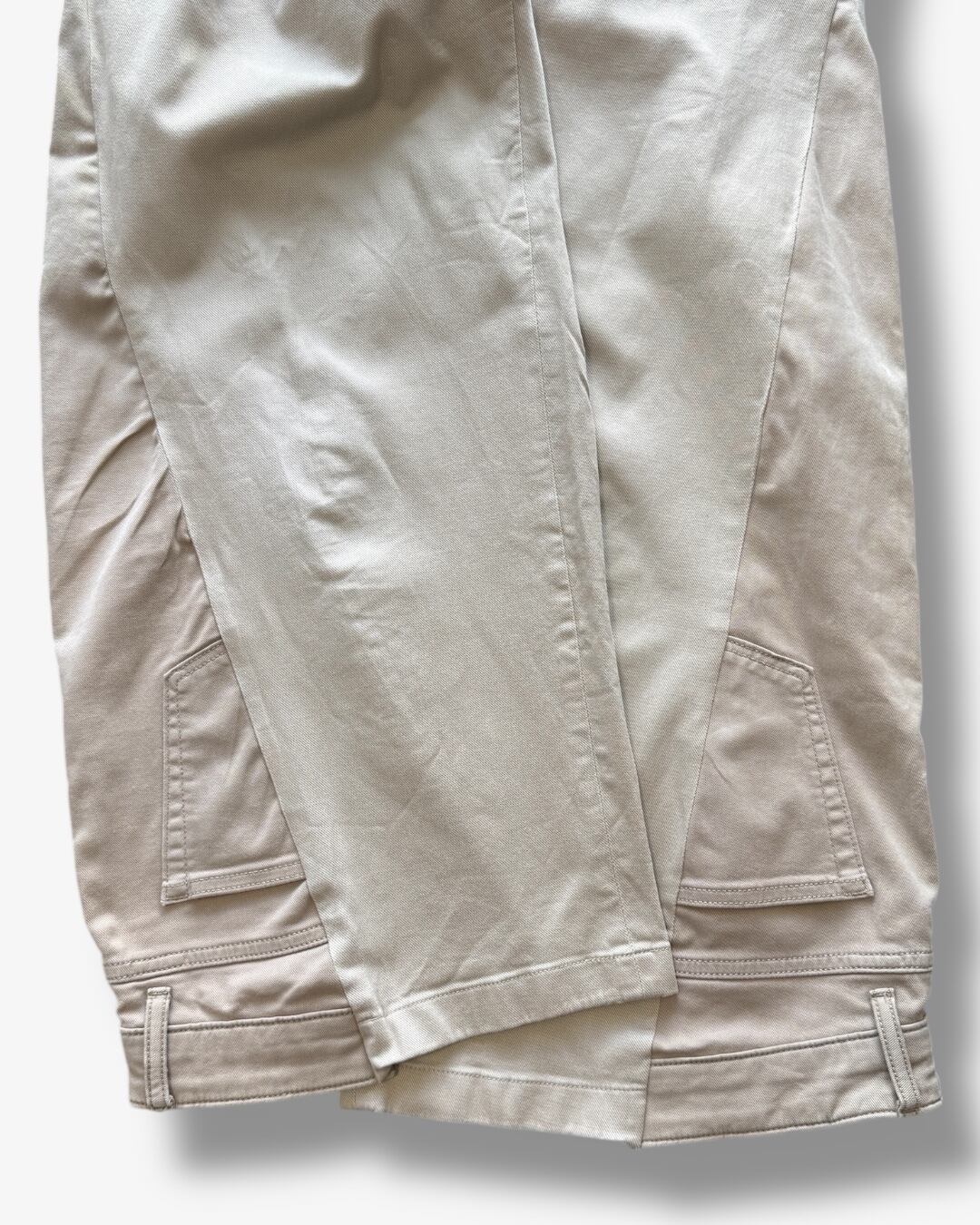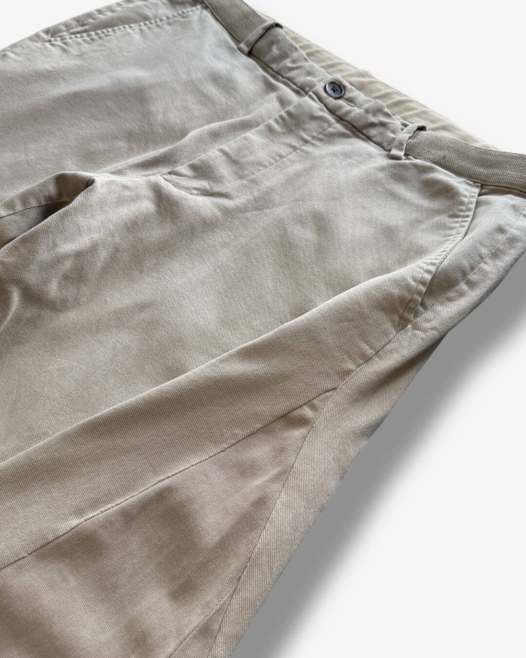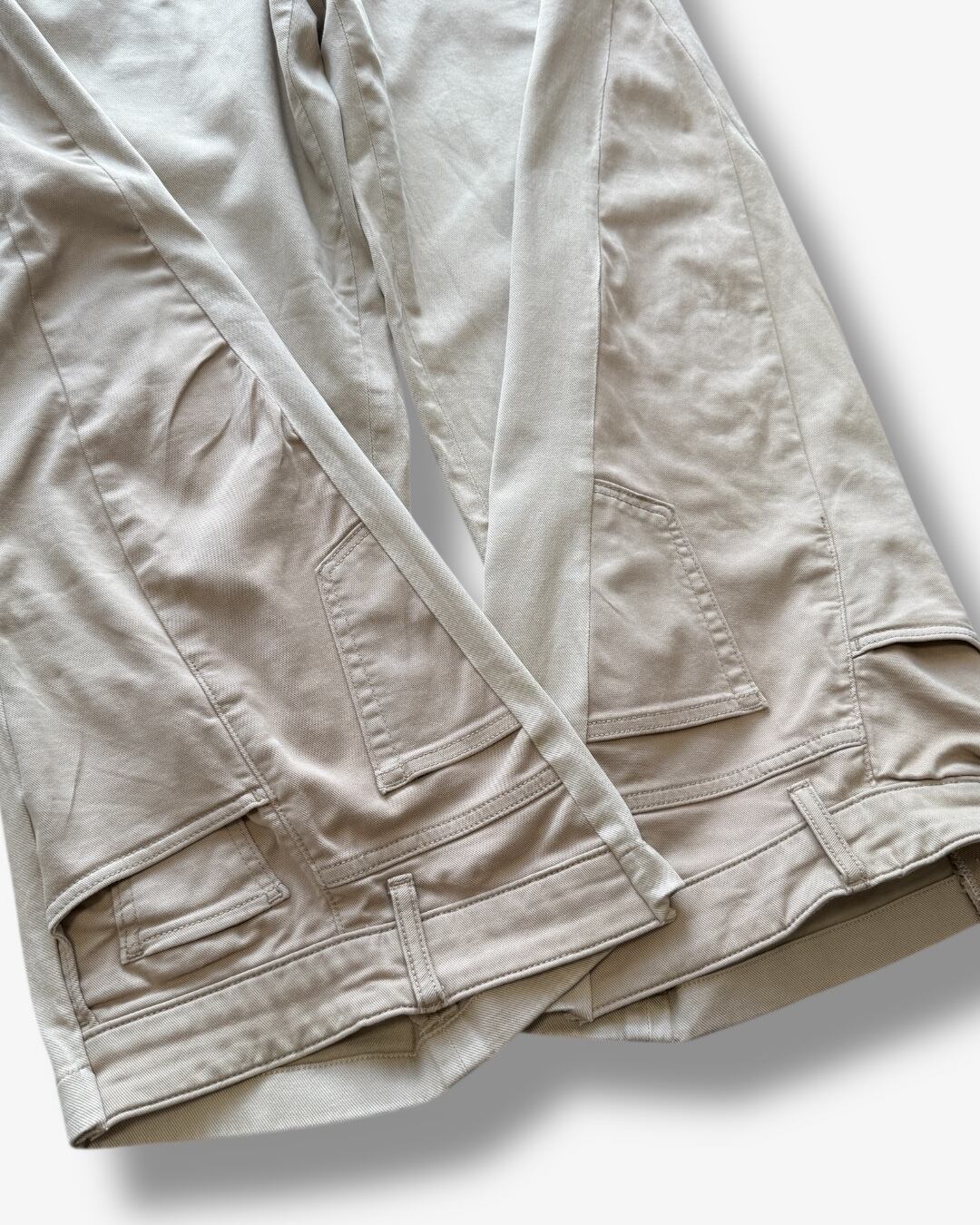 2本のボトムスを再構築して仕上げた、ワイドシルエットのリメイクパンツ。