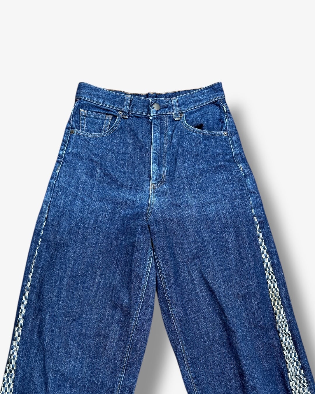 ネクタイをサイドラインとしてドッキングした、リメイクデニム。