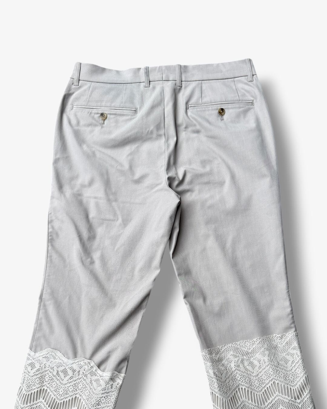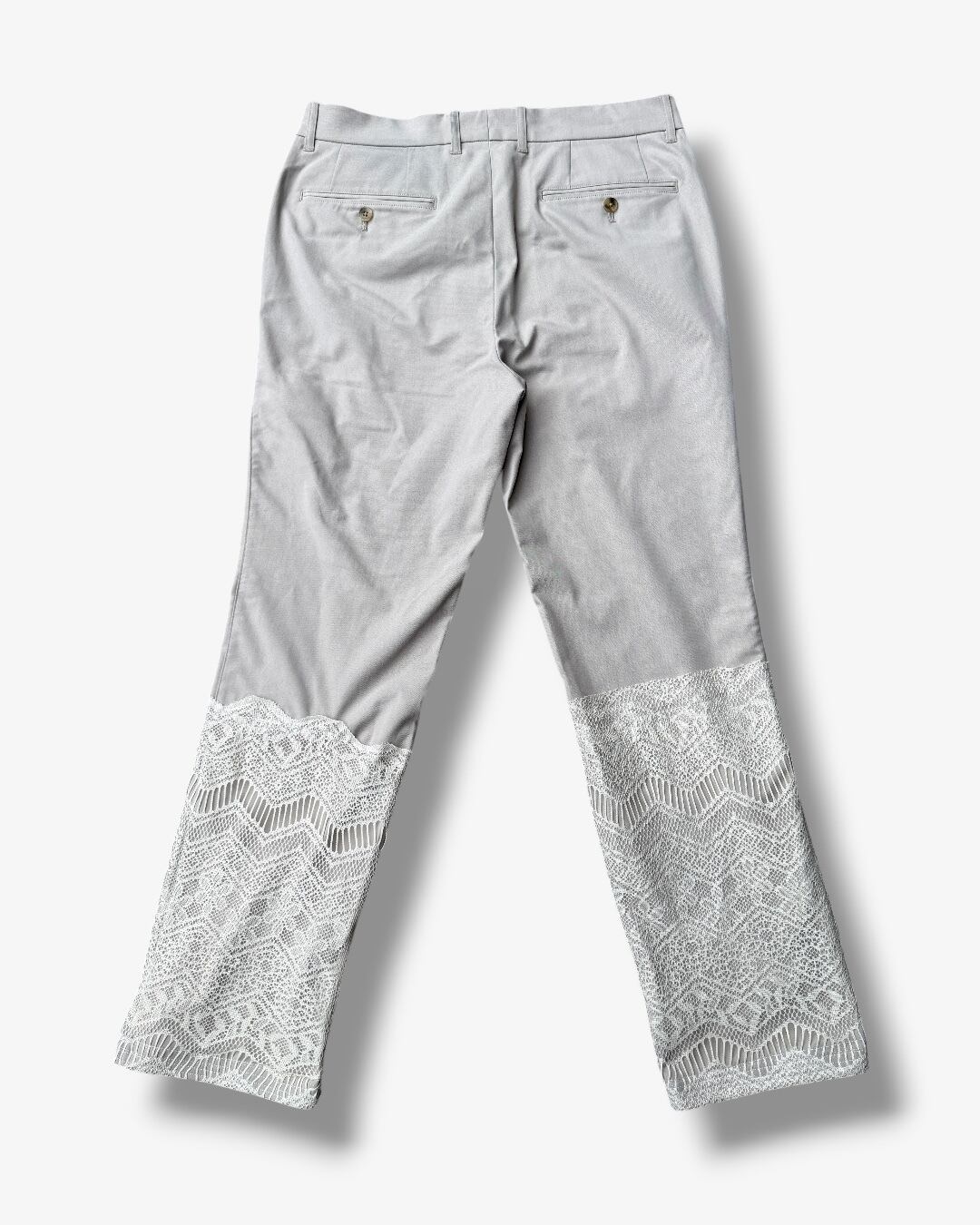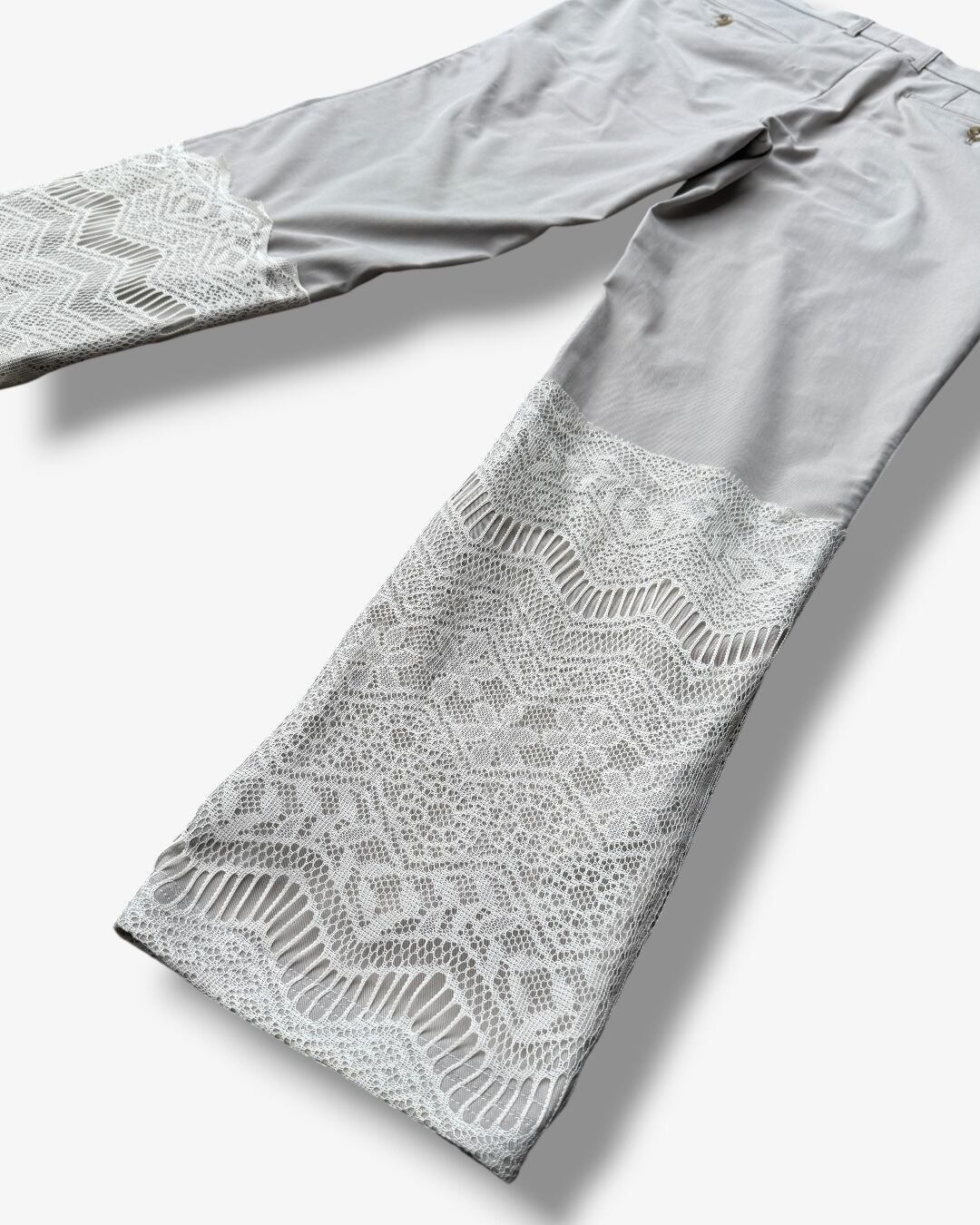 無機質でクリーンなスラックスに、繊細なレースを掛け合わせることで、シンプルながらもコントラストの効いた一本に仕上げました。